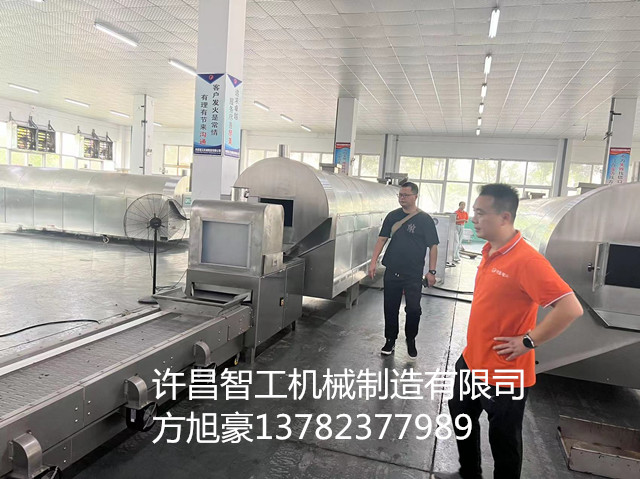 许昌智工八米电磁流水线可炒制瓜子 花生 花生米 南瓜子 各种豆子 腰果等,功能齐全,产量高,效果好,智能控制无需人工看管,现场给客户开机试炒,客户非常满意,现场下单订购流水线一条。