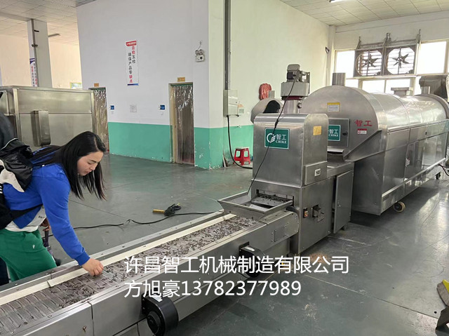 现场开机四米流水线给客户演示炒瓜子流程,上料炒制筛选冷却,全部自动化完成,炒制效果均匀,客户对炒制效果相当满意。