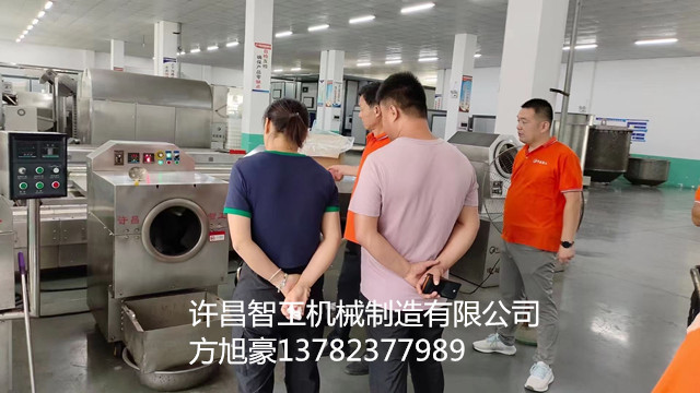2023年8月7日,河南濮阳客户带来阿胶来厂试机电磁炒货机炒制阿胶珠。